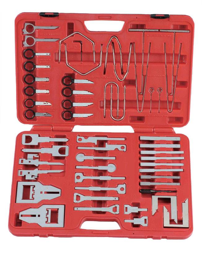 Специальные клещи, предназначенные для снятия клипс салона, деревянных и пластиковых элементов с дверных панелей, приборных панелей и других элементов внутренней обшивки автомобиля. Общая ширина клещей 33мм, ширина вилки-клипсодера 16мм, максимальное раскрыетие клещей 42мм, длина клещей 235мм.