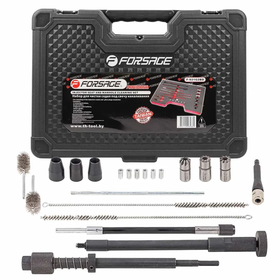Набор инструментов для обслуживания клапанов ДВС 11 предметов представляет собой комплект, который содержит все необходимые инструменты для работы с клапанами двигателя внутреннего сгорания. Держатель (длина 150 мм.) используется для удержания и фиксации клапанов в нужном положении во время обслуживания. Две втулки предназначены для установки наружных диаметров сальников размером от 10,8 до 14,8 мм. Обеспечивают точное и надежное крепление сальников в процессе работы. Адаптеры (5, 5.5, 6, 6.6, 7, 8 и 3/8”.) используются для соединения инструментов с различными размерами и типами головок клапанов. Обеспечивают удобство и эффективность работы. Специальные плоскогубцы имеют особую конструкцию, которая позволяет удерживать и манипулировать клапанами с высокой точностью и безопасностью. Кейс служит для хранения и транспортировки всех инструментов набора, обеспечивая их сохранность и порядок. Все инструменты в наборе изготовлены из высококачественных материалов, обеспечивающих долговечность и надежность. Набор пред