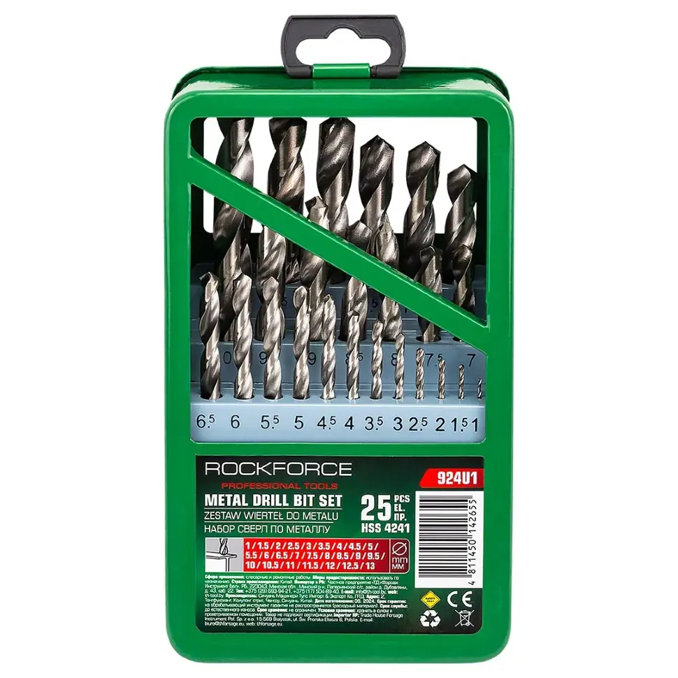 Набор сверл по металлу HSS, 13пр. (1.5-6.5мм), в пластиковом футляре Rock FORCE RF-DBS13