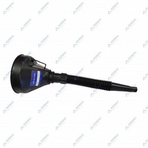Воронка маслобензостойкая. Подходит для работы с химически активными составами. растворителями и др. Может использоваться для перелива различных технических жидкостей. У воронки гофрированный соединяемый шланг.